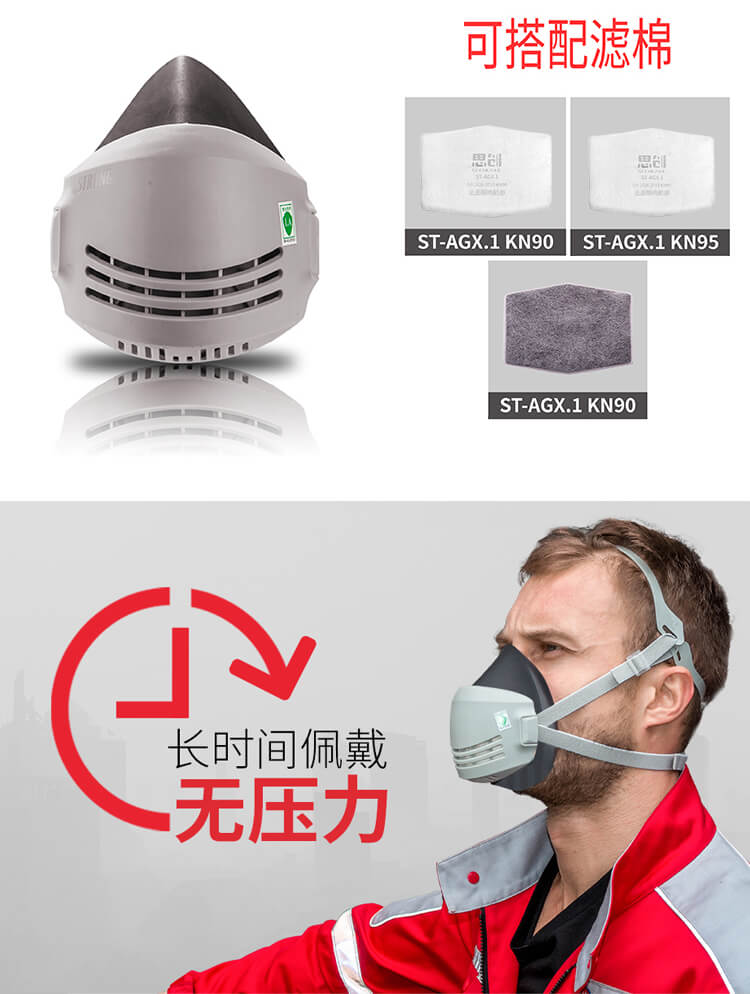 >1/4臉部大小面罩,僅100g重,適合高強(qiáng)度勞動(dòng)者長期佩戴