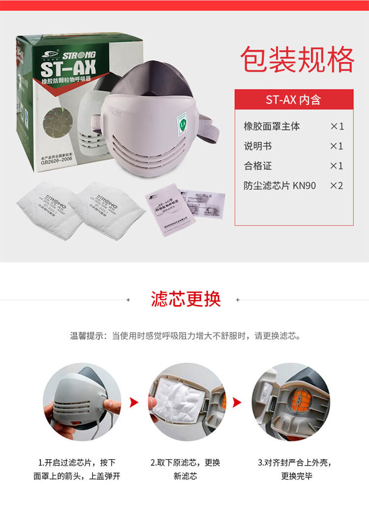 >每套內(nèi)含一個(gè)ST-AX半面罩、兩片AGX.1KN90濾芯