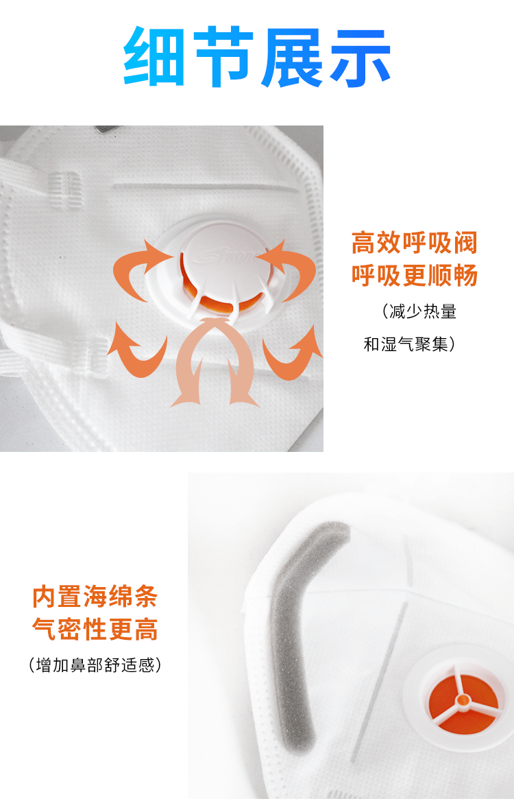 用于防護非油性顆粒物,過濾效率在95%以上 ·高效靜電濾材,保證高過濾效率、低呼吸阻力; ·鋁制可塑鼻梁條,耐彎折,更貼合; ·加寬彈性耳帶頭帶,超聲波焊接牢固 ·大口徑呼吸閥,硅膠閥片,有效排出熱氣,佩戴更舒適,特別適合重體力勞動·者及悶熱環(huán)境佩戴。