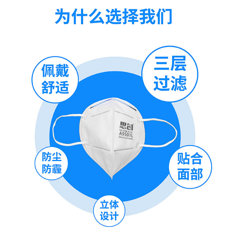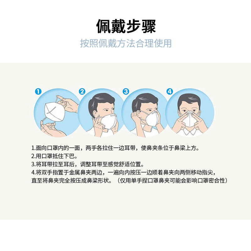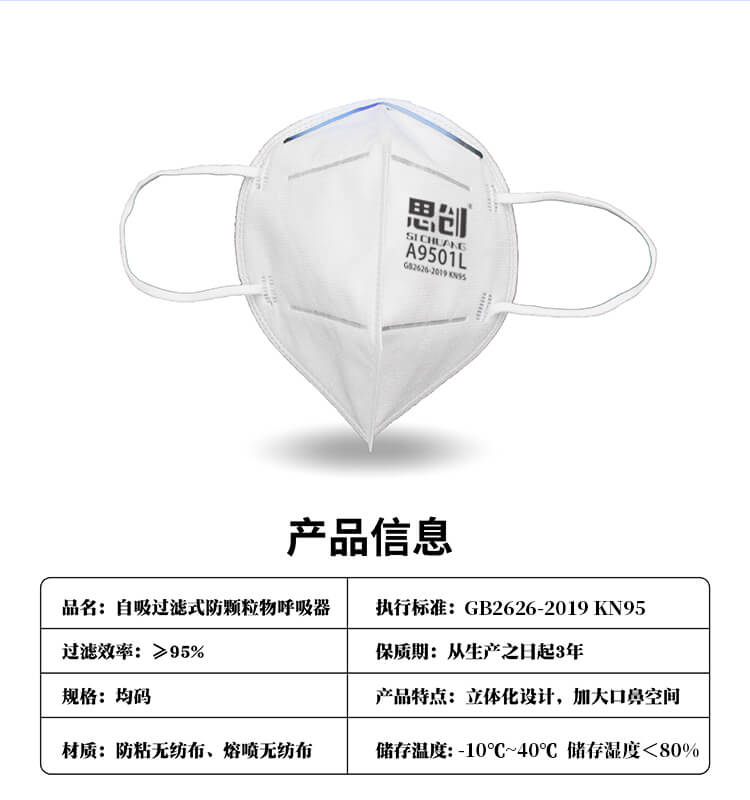 用于防護非油性顆粒物,過濾效率在95%以上 ·高效靜電濾材,保證高過濾效率、低呼吸阻力 ·鋁制可塑鼻梁條,耐彎折,更貼合 ·加寬彈性耳帶頭帶,超聲波焊接牢固